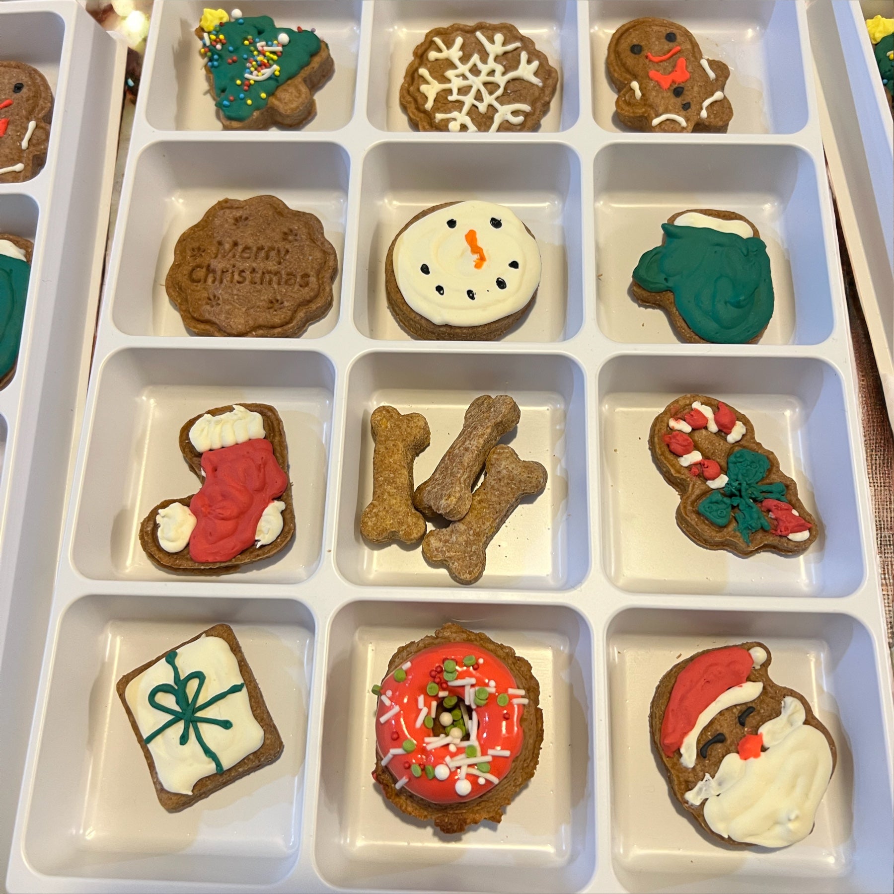 Make your pup’s holiday season extra special with The Doggy Bag’s 12 Days of Dog Treats Advent Calendar! Each day reveals a new hand-decorated peanut butter treat, crafted with love and made from our signature dog-safe recipe.